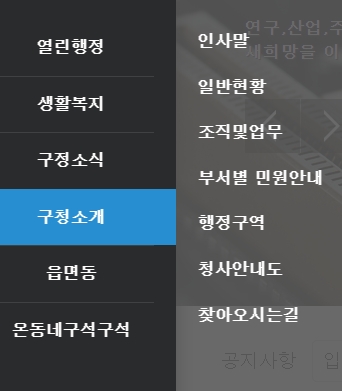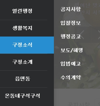 2. 열린 행정 메뉴는 구정의 방향성과 현재 진행 중인 주요 정책들을 투명하게 확인할 수 있는 공간이에요. 주민들과 소통하려는 노력이 담겨 있는 곳이라 평소 구정 운영에 관심 있으신 분들이라면 꼭 둘러보셔야 해요. 계획이 어떻게 수립되고 실행되는지 흐름을 파악하는 데 도움이 됩니다.