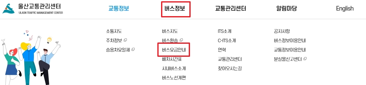 2. 홈페이지 상단에 있는 메뉴에서 버스정보를 클릭한 다음 버스요금안내로 들어가세요. 여기서 울산 시내버스의 최신 요금 정보를 바로 확인할 수 있어요. 종류별로 요금이 어떻게 다른지, 카드와 현금 요금 차이도 잘 정리되어 있어서 헷갈릴 일이 없답니다. 저도 급하게 요금 확인할 때 자주 이용하는 메뉴예요.