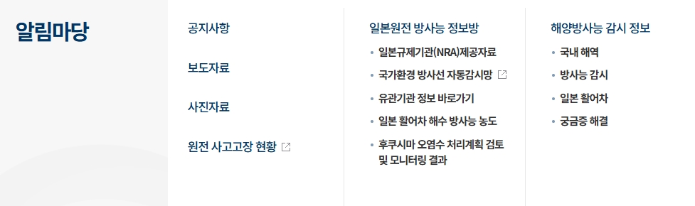 4. 알림마당 메뉴에서는 최신 공지사항과 뉴스, 그리고 각종 자료들을 확인할 수 있습니다. 특히 요즘처럼 원전 관련 이슈가 많은 시기에, 신뢰할 수 있는 정보를 바로 확인할 수 있는 곳이라 꼭 챙겨보시길 추천드립니다.