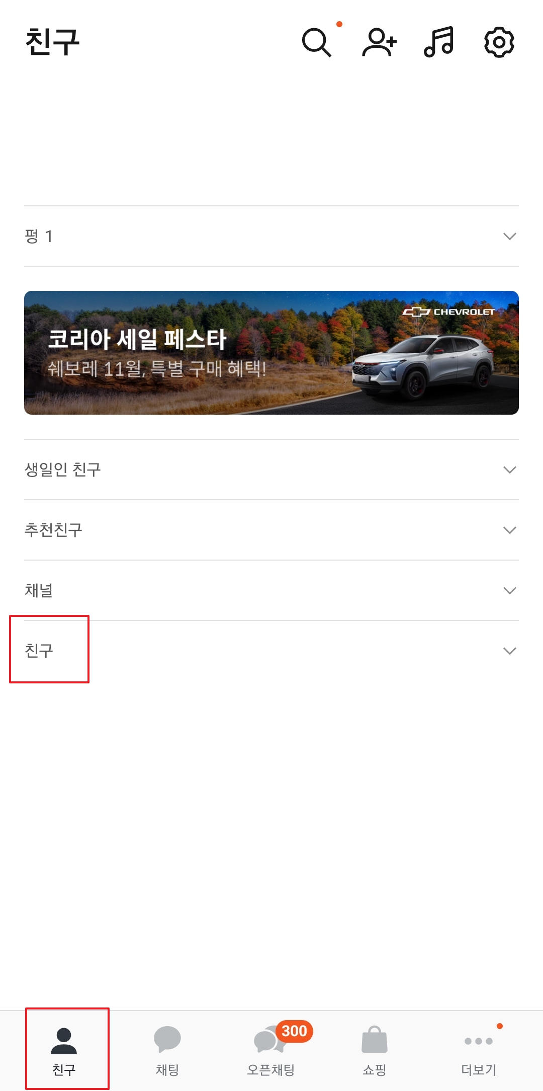 1. 카카오톡을 실행한 후 하단 메뉴에서 친구 탭을 눌러주세요. 여기에 평소에 대화를 나누던 친구들이 쭉 나오는데요, 이 화면에서 현재 등록된 친구들을 한눈에 확인할 수 있습니다. 필요에 따라 친구 목록을 정리하기 좋은 시작점이에요.