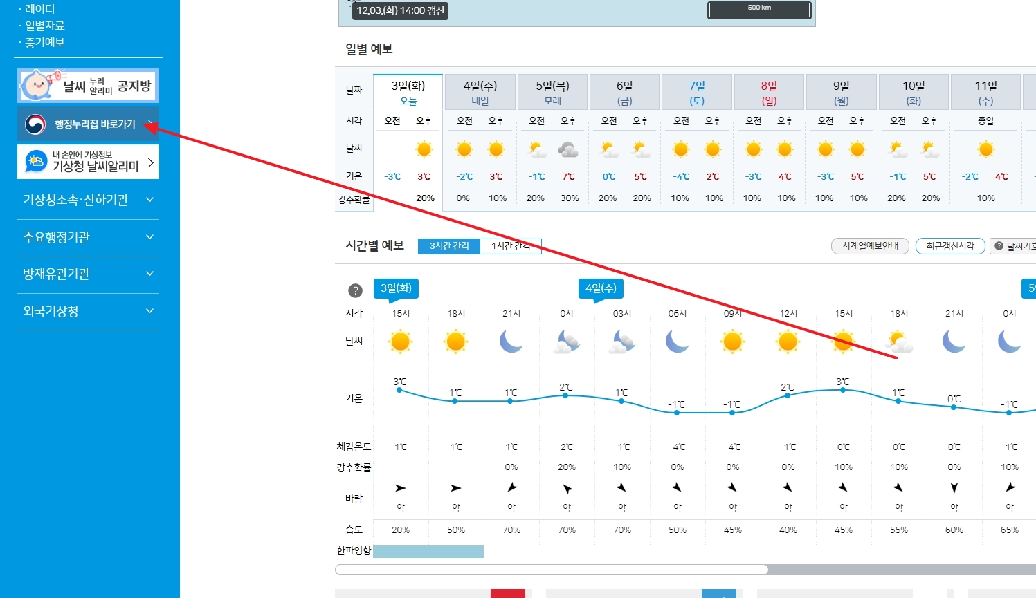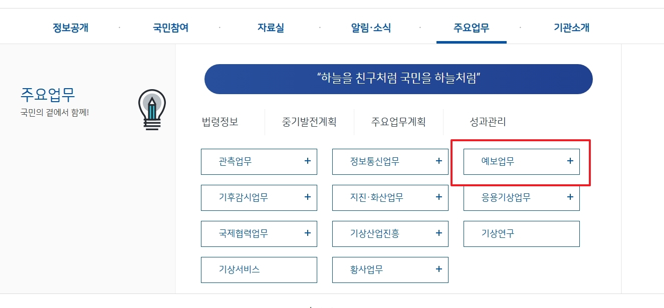 2. 사이트 메인 화면을 천천히 내려보면 왼쪽 편에 여러 가지 메뉴들이 보이는데요, 여기서 행정누리집 바로가기라는 버튼을 찾아 클릭해 주세요. 이 페이지는 기상청의 공식 행정업무 자료와 다양한 공공서비스 정보로 연결되며, 평소에는 접하기 힘든 세부사항까지 꼼꼼히 확인할 수 있습니다.