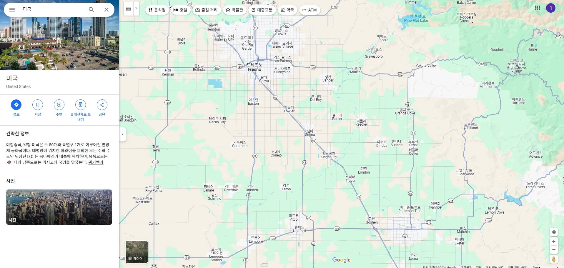 미국 지도 위에 마우스를 가져다 대면 도로명이나 도시 이름이 한글로 바로 나타나서 길 찾기가 훨씬 편해요. 지도 오른쪽 아래에 있는 레이어 아이콘을 클릭하면 위성 사진이나 지형 모드로 전환할 수 있는데, 그 상태에서도 모든 이름이 한국어로 표시돼서 헷갈릴 일이 없어요.