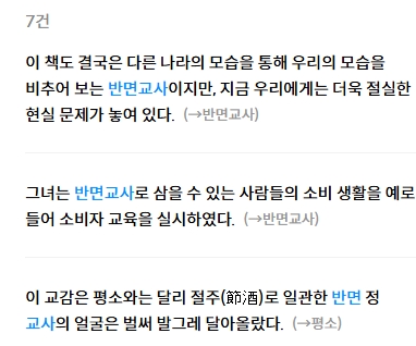 "그녀는 반면교사로 삼을 수 있는 사람들의 소비 생활을 예로 들었다."라는 문장에서처럼, 실제 사례를 통해 잘못된 행동을 개선하려는 의도가 반면교사의 핵심입니다.