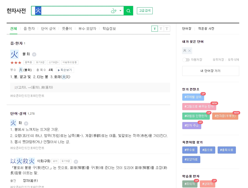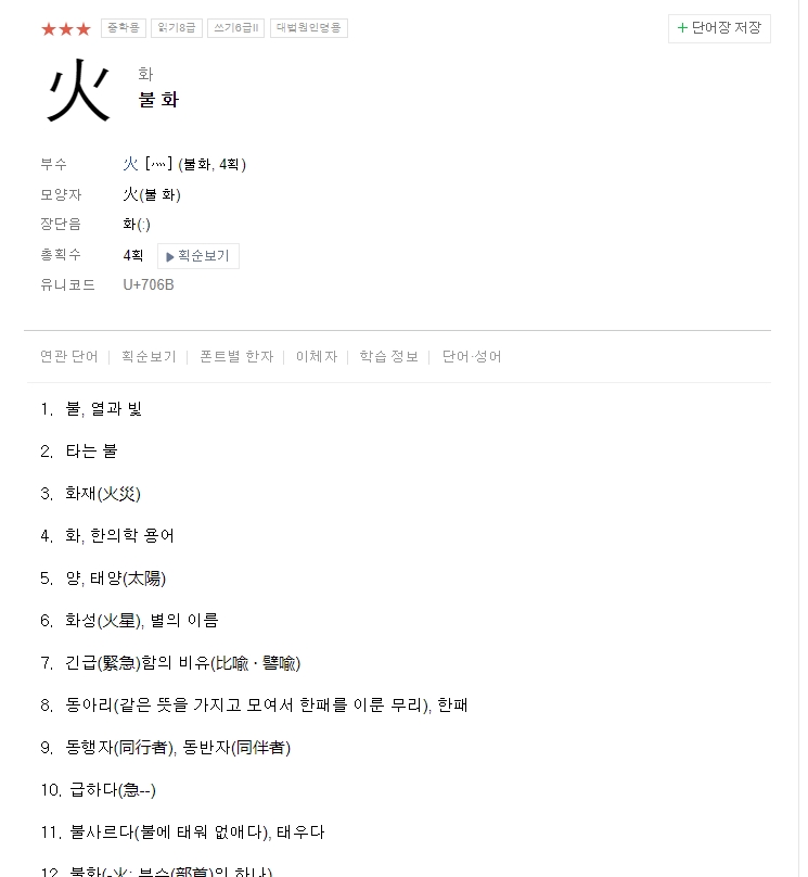 검색된 불화(火) 한자의 의미, 관련 단어, 성어, 부수, 총획수, 획순 등 다양한 정보를 확인할 수 있습니다. 학습의 깊이를 더하는 데 큰 도움이 됩니다.