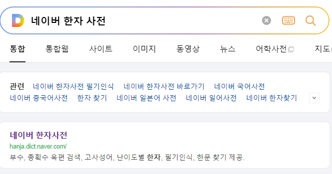 네이버 한자사전 홈페이지에 접속하면 필기 인식 외에도 부수, 총획수, 고사성어 등 다양한 검색 기능을 제공합니다. 한자 학습자에게 최적화된 환경을 갖춘 사이트이니 가장 먼저 방문하세요.