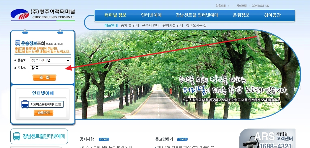 1. 청주여객터미널 홈페이지 접속