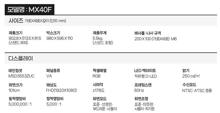 이처럼 40인치 TV라고 하더라도 실제 외형은 모델마다 제법 차이가 있습니다. 화면만의 크기를 볼 것인지, 외부 프레임이나 스탠드까지 고려할 것인지에 따라 구매 기준도 달라질 수 있으니, 실측과 비교는 꼭 해보셔야 합니다.