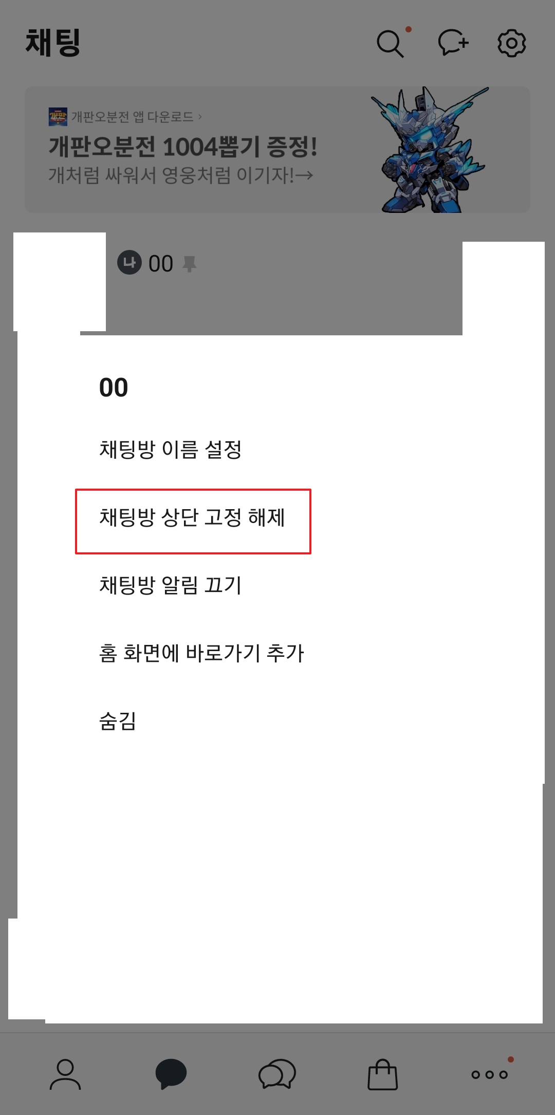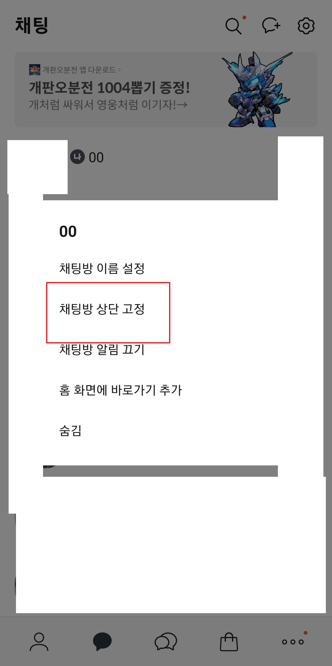 1. 채팅방을 길게 눌러 메뉴 열기