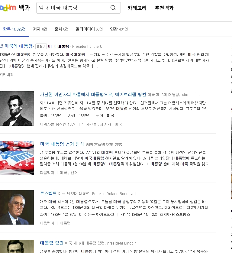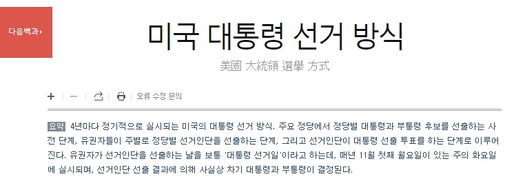 다음백과 홈페이지에 접속해 미국 대통령에 대한 정보를 검색합니다. 다음백과는 국내에서 많이 사용하는 정보 제공 사이트 중 하나이며, 일반인들도 쉽게 이해할 수 있게 다양한 정치, 역사, 사회적 주제를 설명해주는 곳입니다. 대통령 임기나 선거 방식 등 헌법 관련 정보도 체계적으로 정리되어 있기 때문에 정확한 정보를 얻기 위해 가장 먼저 참고해보는 것이 좋습니다.