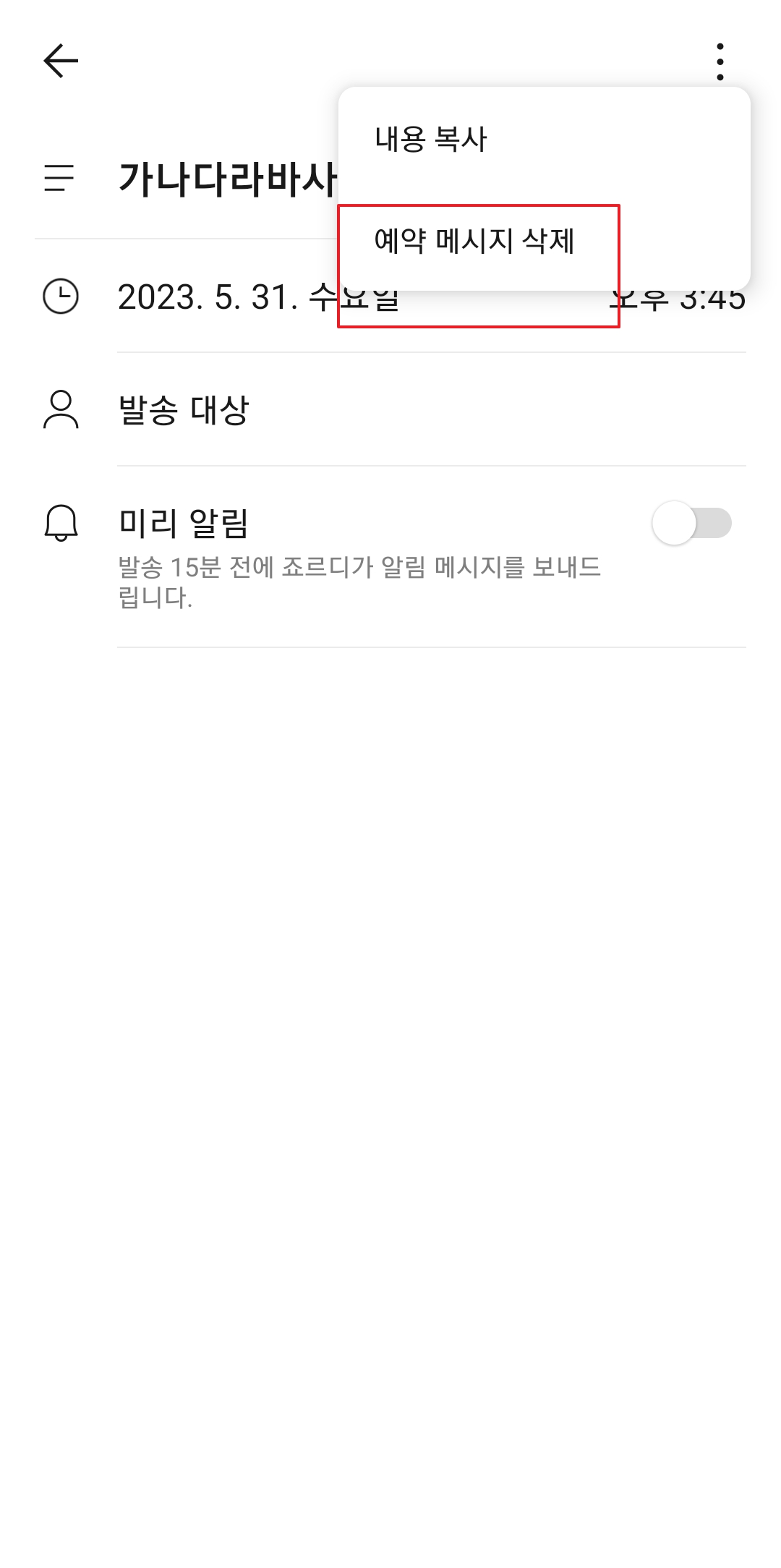 카톡 예약 전송, 예약 문자 보내기