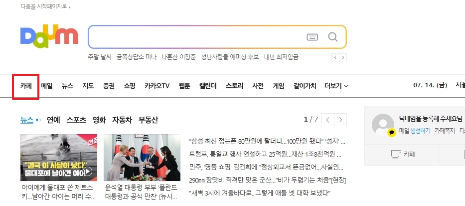 우선 다음 홈페이지로 들어가셔야 해요. 로그인을 하고 나서 맨 위를 보면 여러가지 메뉴들이 줄지어 있는데, 그 중에서 '카페'라고 쓰여 있는 글자를 찾아서 눌러주면 됩니다. 보통 메일이나 뉴스 같은 다른 메뉴들 옆에 있으니 금방 찾으실 수 있을 거예요. 이걸 누르면 내가 가입한 카페들을 볼 수 있는 화면으로 넘어가게 된답니다. 정말 간단하죠?