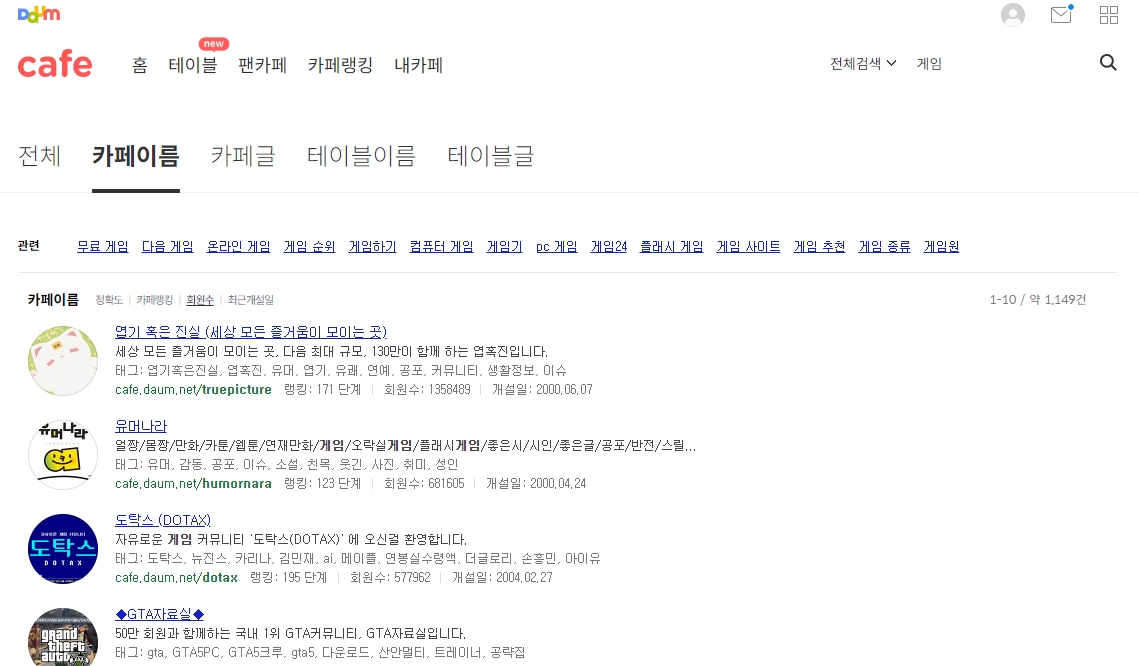 다음 카페 내 카페 목록