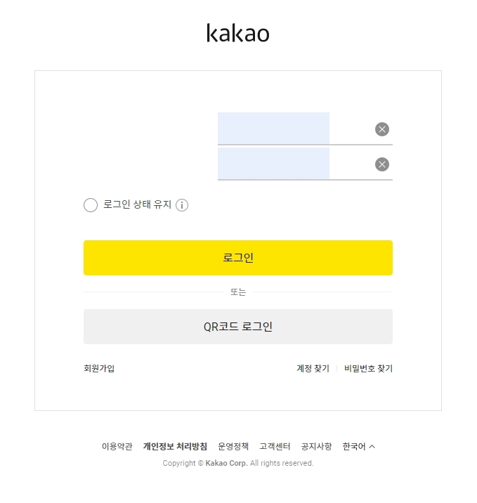 이제 아이디랑 비밀번호를 적고 로그인을 해야 하는데요, 여기서 중요한 점이 하나 있어요. 예전부터 쓰던 다음 아이디가 아니라 카카오 계정으로 통합해서 쓰는 분들이 많을 거에요. 그냥 카카오 계정이면 아이디만 적으면 되지만, 만약 옛날 다음 아이디를 그대로 쓴다면 아이디 뒤에 @daum.net 같은 메일 주소까지 전부 다 적어주셔야 로그인이 제대로 된답니다. 이걸 헷갈리면 계속 로그인이 안된다고 나올 수 있으니 꼭 확인하세요.