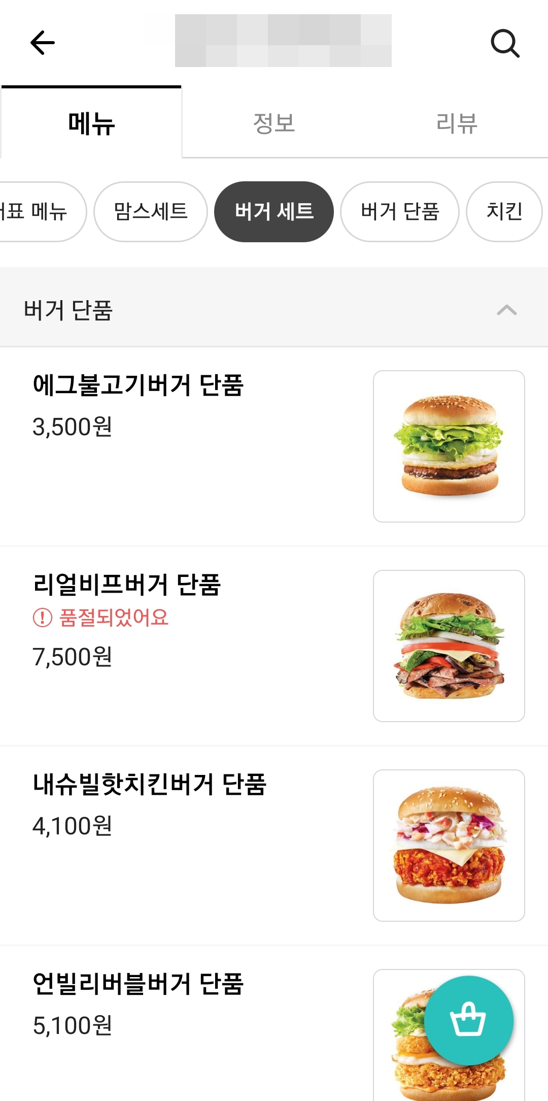 다음은 가장 많이들 찾으시는 버거 세트 메뉴입니다. 메뉴를 보다 보니 에그불고기버거라는 처음 보는 이름이 있네요. 기존에 디럭스불고기버거는 알고 있었지만 계란이 추가된 메뉴는 신선하게 느껴집니다. 그리고 가끔 품절로 표시되는 리얼비프버거는 호불호가 조금 갈리는 메뉴인 것 같아요. 언빌리버블버거나 인크레더블버거처럼 크고 푸짐한 버거들은 약 7천원 대의 가격을 형성하고 있습니다.