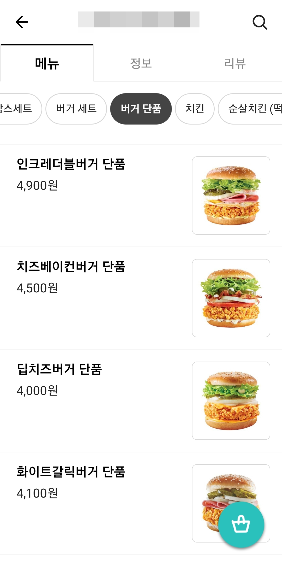 기본 소스는 추가 요청 시 비용이 발생하지 않는 것으로 알고 있으니 주문할 때 참고하시면 좋습니다. 그 외에도 화이트갈릭버거, 할라피뇨통살버거, 휠렛버거 등 정말 다양한 종류의 치킨버거들이 있어서 취향에 따라 골라 먹는 재미가 쏠쏠합니다.