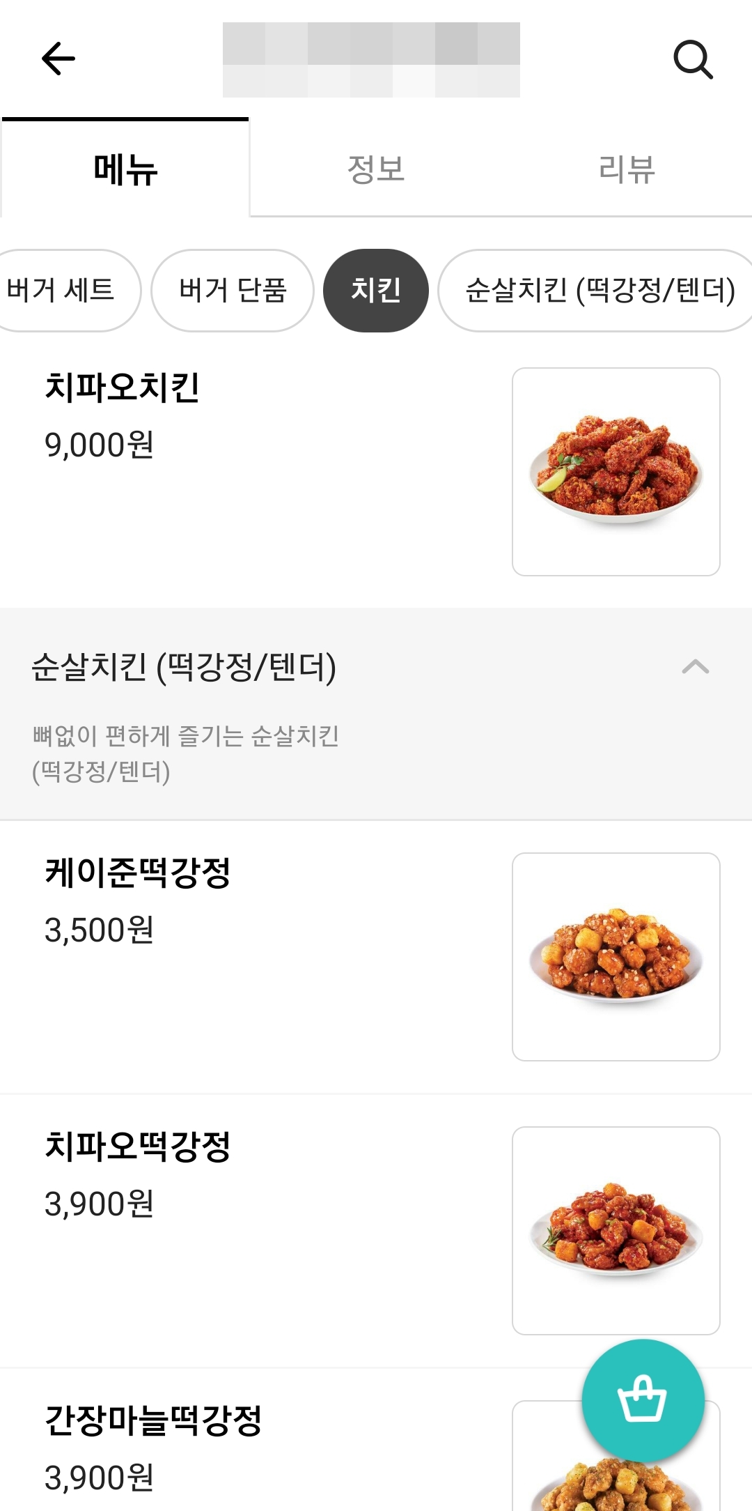 맘스터치는 버거 맛집이기도 하지만 동시에 훌륭한 치킨 맛집이기도 합니다. 후라이드치킨부터 맘스양념치킨, 간장마늘치킨, 치즈를 뿌린 치즈뿌치까지 다양한 맛의 치킨을 즐길 수 있습니다. 특히 떡이 들어간 케이준떡강정, 치파오떡강정, 간장마늘떡강정은 쫄깃한 식감까지 더해져 인기가 많습니다.