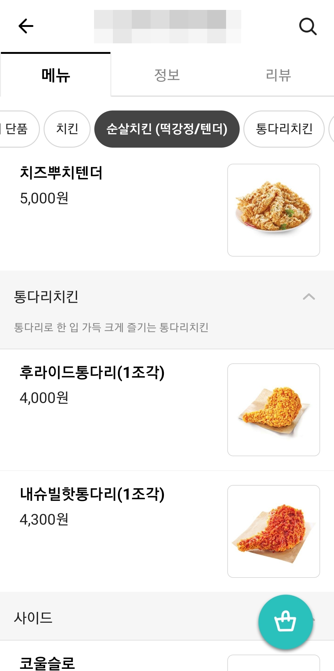 치킨 가격이 다른 전문점에 비해 저렴해 보일 수 있지만, 그만큼 양도 가격에 맞춰 제공된다는 점은 알아두시면 좋습니다. 특히 4천원대의 순살치킨은 양이 많지 않아서 간단한 간식이나 사이드 메뉴로 생각하고 주문하는 것이 좋습니다.