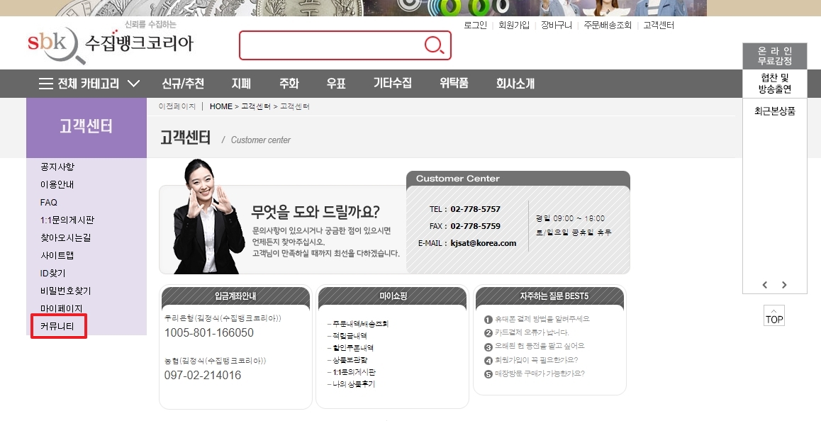 고객센터 메뉴로 들어오셨다면, 여러 하위 메뉴 중에서 '커뮤니티'나 '게시판'과 관련된 항목을 찾으세요. 그리고 다음으로 나타나는 페이지에서 '온라인 무료 감정' 게시판을 선택하면 됩니다.