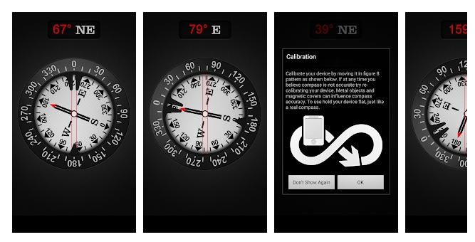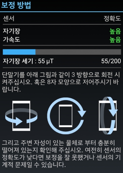 정확한 보정을 지원하는 나침반 어플