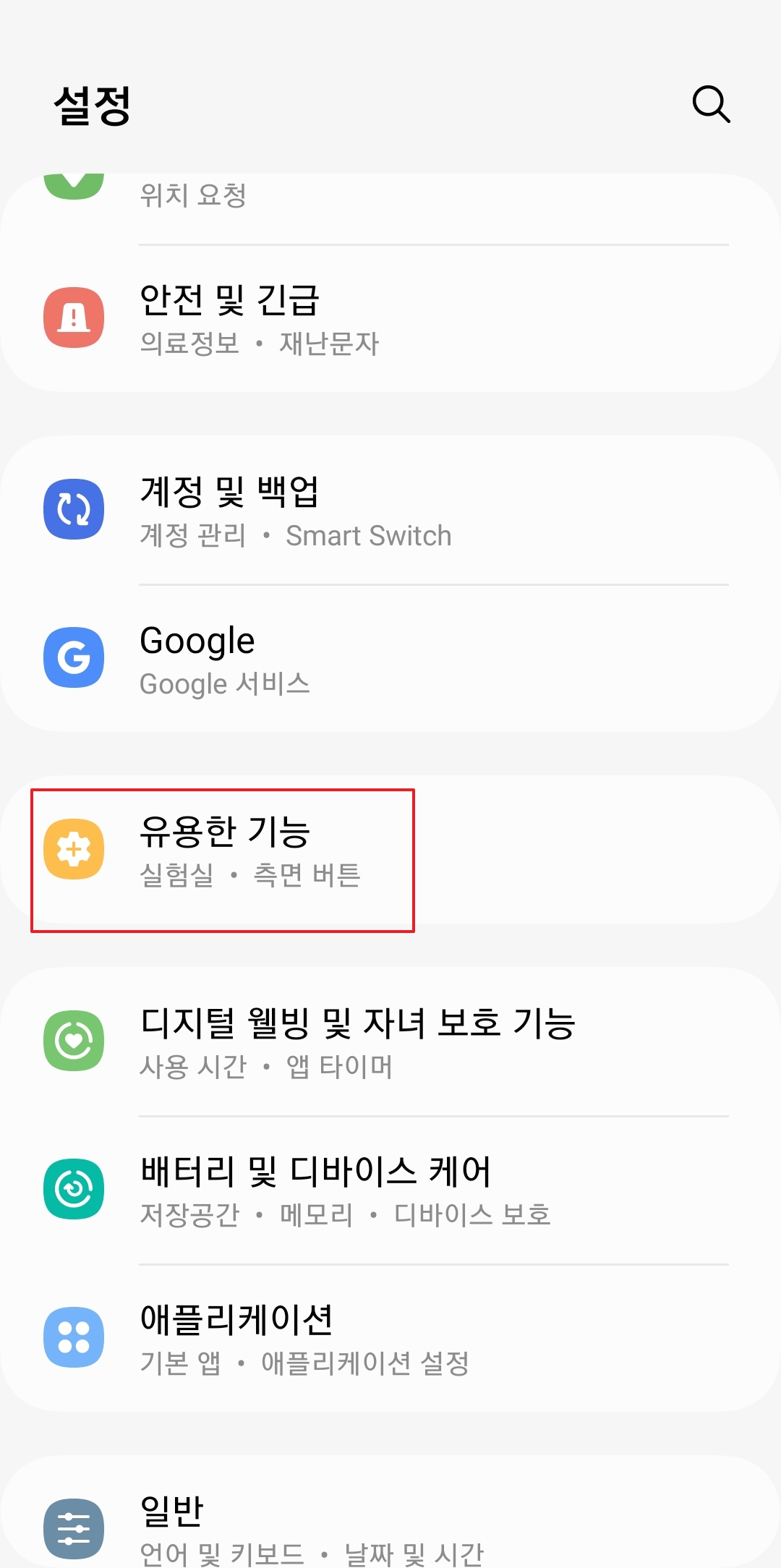 설정 메뉴에 들어왔다면 화면을 아래로 쭉 내려 '유용한 기능'이라는 항목을 찾아주세요. 이 메뉴에는 일상에서 스마트폰을 더욱 편리하게 사용할 수 있는 여러 가지 특별한 기능들이 모여 있습니다.