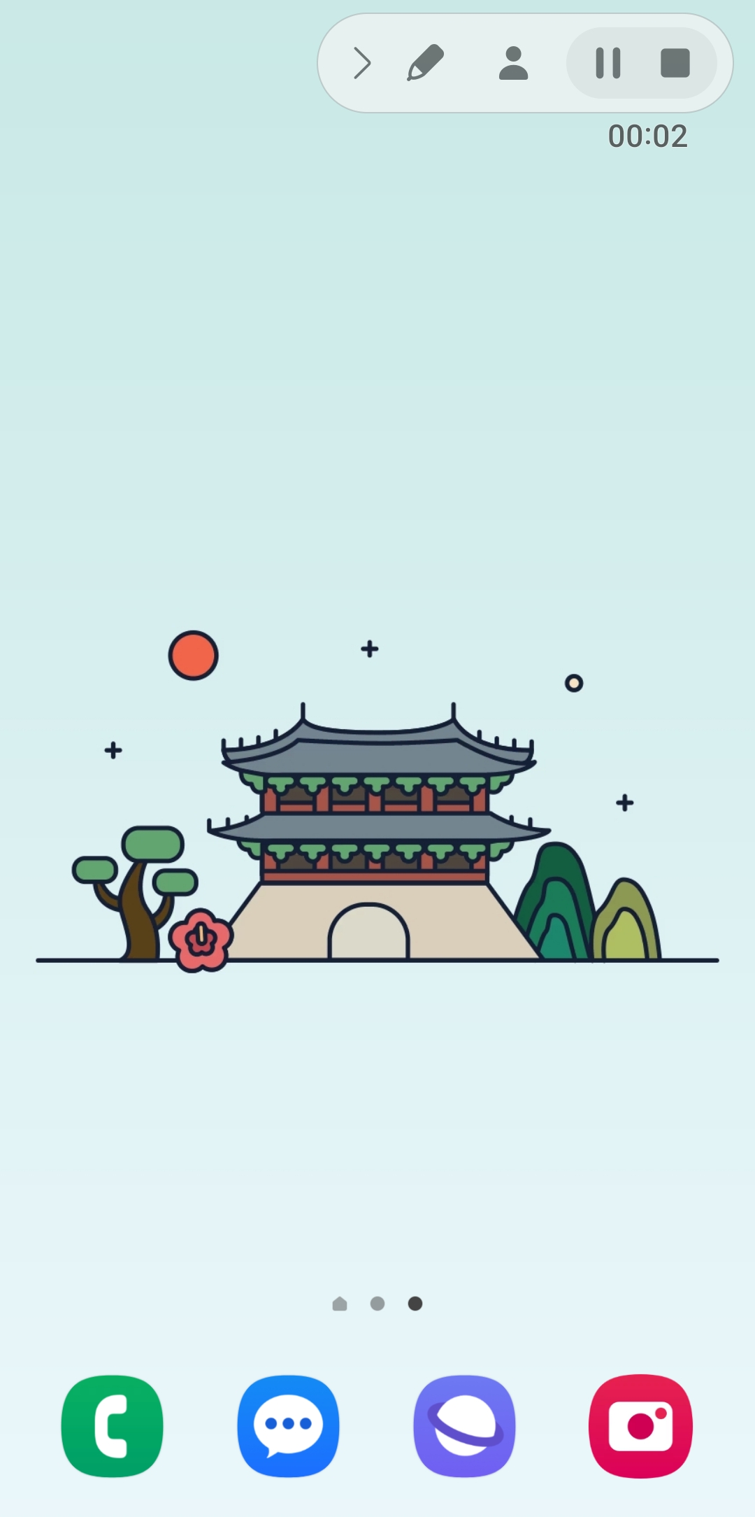 녹화 시작 버튼을 누르면 화면에 3초 카운트다운이 표시됩니다. 이 시간 동안 녹화할 화면을 미리 준비할 수 있습니다. 3, 2, 1 숫자가 사라지면 본격적인 녹화가 시작됩니다.