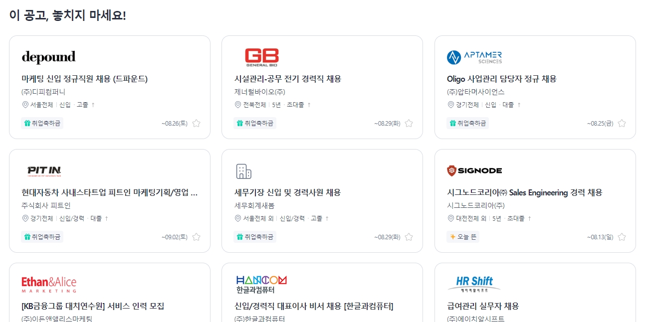 이 기능을 사용하면 디자이너, 마케터, 개발자, 생산직 등 원하는 직업군을 구체적으로 설정할 수 있습니다. 내가 가진 기술과 경력에 맞는 일자리를 찾기 위한 필수 과정이라고 할 수 있습니다.