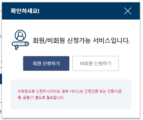 비회원 신청을 눌렀더라도, 민원 서류 발급을 위해서는 본인 인증이 꼭 필요해요. 이때 공동인증서나 금융인증서 같은 인증서가 필요하답니다. 미리 준비해두시면 과정을 막힘없이 진행할 수 있어요.