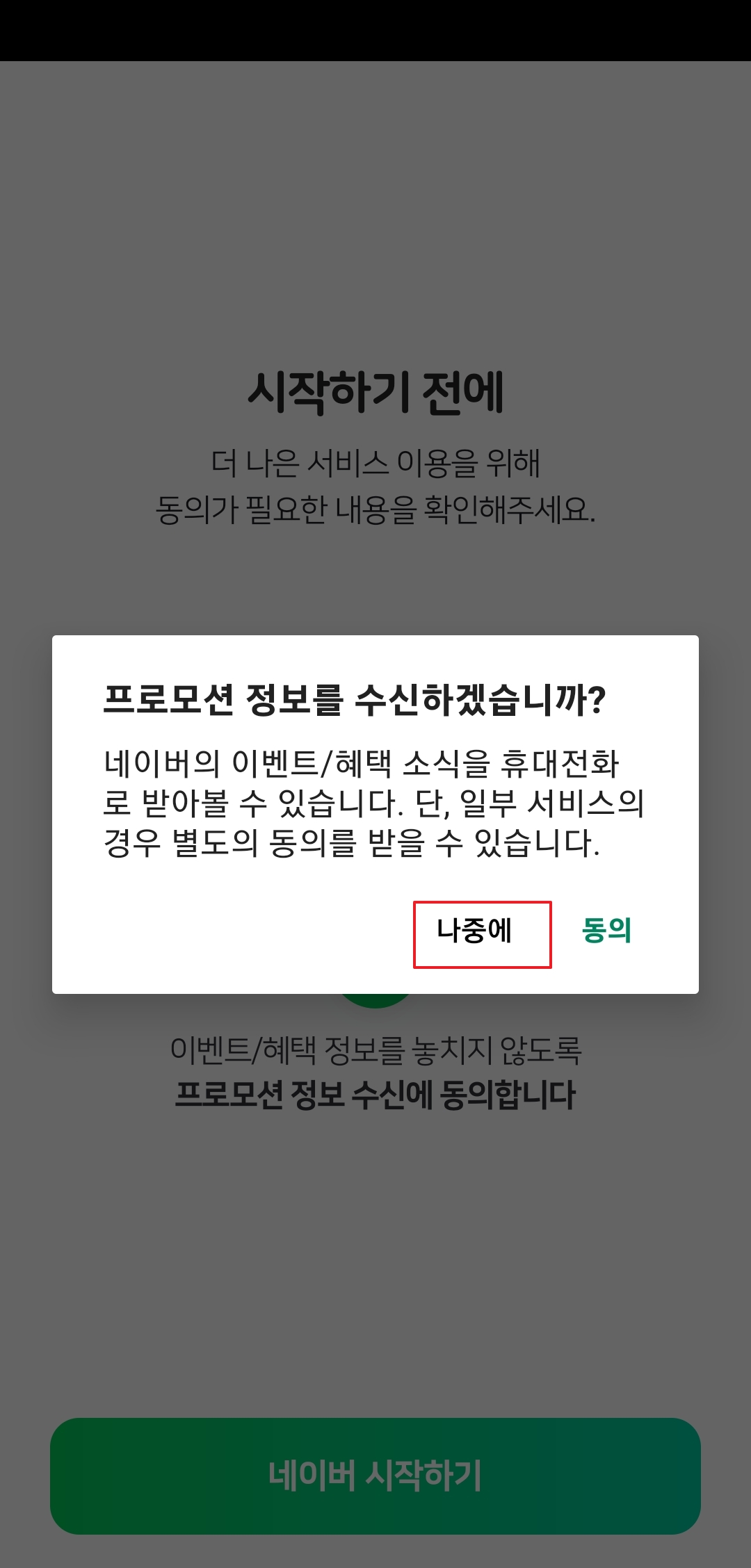 알림 설정도 또 물어보는데, 이것도 '나중에'로 미루셔도 괜찮아요. 자꾸 물어봐서 좀 귀찮긴 한데, 이게 거의 마지막 설정 단계일 거예요.