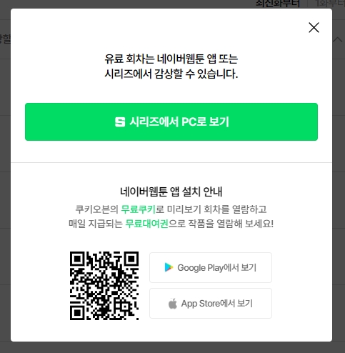 가끔 PC로 보려고 할 때 '지원하지 않는 환경'이라며 앱 설치를 유도하는 팝업이 뜰 때가 있습니다. 주로 '매일+' 같은 특정 프로모션 작품이나 성인 인증이 필요한 콘텐츠에서 이런 안내가 나오는데요.