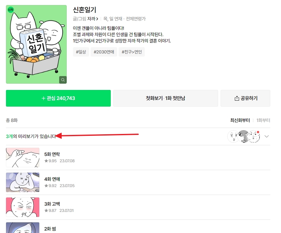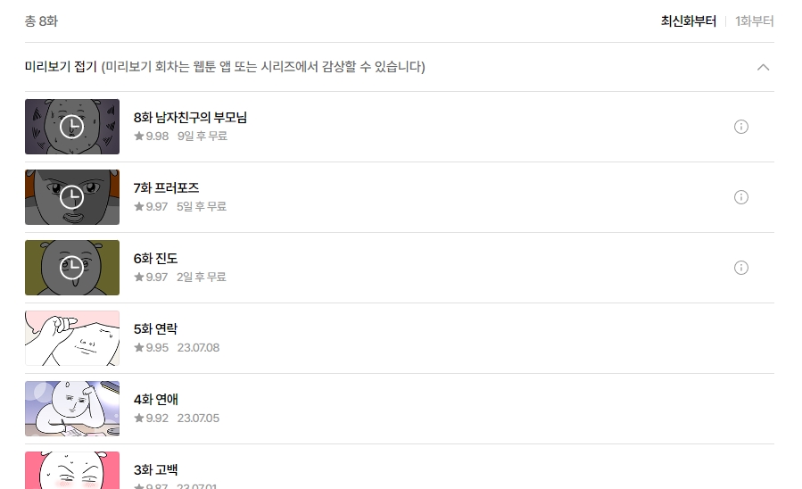 저도 예전에 한 번 미리보기를 시작했다가, 매주 결제하지 않으면 못 견디는 상황이 와서 꽤나 고생했거든요. 한 번 미리보기를 시작하면 계속 결제해야 흐름이 안 끊기니 신중하게 결정하시는 게 좋습니다. 그냥 느긋하게 매주 무료로 풀리는 걸 즐기는 게 정신건강에 이롭더라고요.