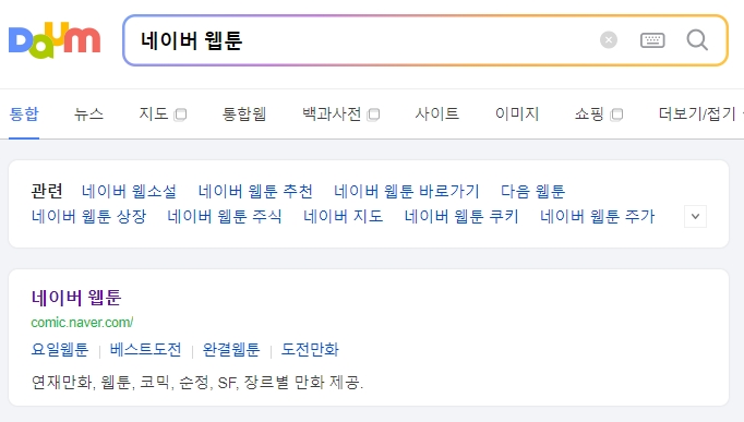메인 화면에 들어오셨다면 상단에 위치한 여러 메뉴바 중에서 '웹툰' 탭을 찾아 클릭해주시면 됩니다. 뉴스나 쇼핑 등 워낙 메뉴가 많아서 처음엔 잘 안 보일 수도 있는데, 보통 검색창 바로 아래나 좌측 상단에 고정되어 있어서 찾기 어렵진 않으실 거예요.