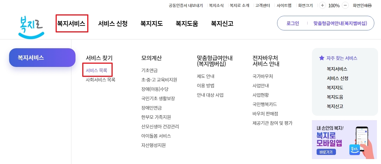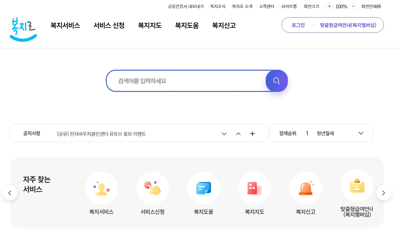 복지로 홈페이지 (www.bokjiro.go.kr)