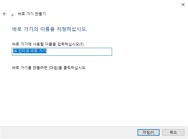 이름까지 마음에 들게 정했다면 하단의 '마침(F)' 버튼을 눌러주세요. 이렇게 하면 복잡한 과정 없이 모든 설정이 완료됩니다. 생각보다 훨씬 간단해서 놀라셨을 수도 있어요.