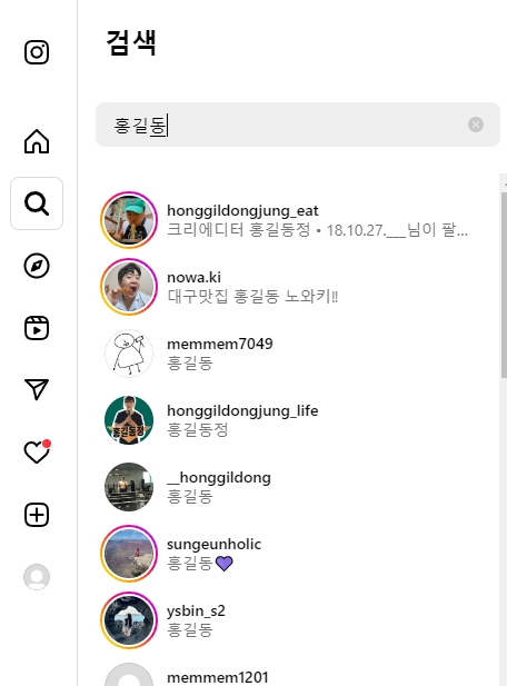 예를 들어 '홍길동'처럼 흔한 이름을 검색하면, 정말 난감할 정도로 많은 결과가 쏟아집니다. 게다가 요즘은 가게 이름이나 브랜드 계정도 같이 검색되기 때문에 헷갈리기 쉽거든요.