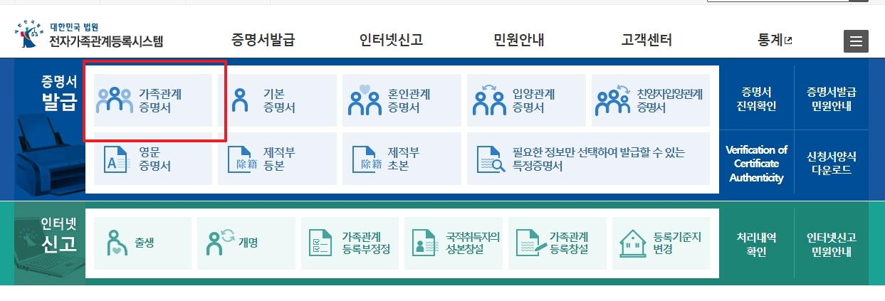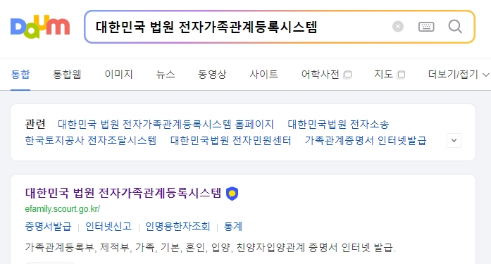준비가 되셨다면 가장 먼저 포털 사이트에 대한민국 법원 전자가족관계등록시스템을 검색해서 접속해 주세요. 이름이 좀 길죠?
