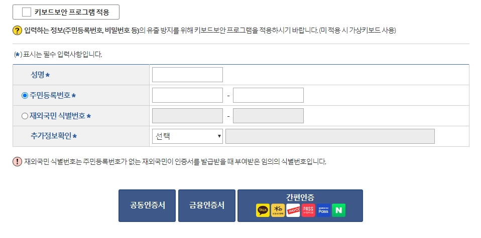 - 또는 공동/금융 인증서 (PC 저장 시)