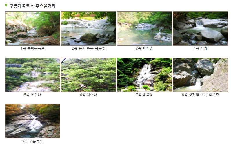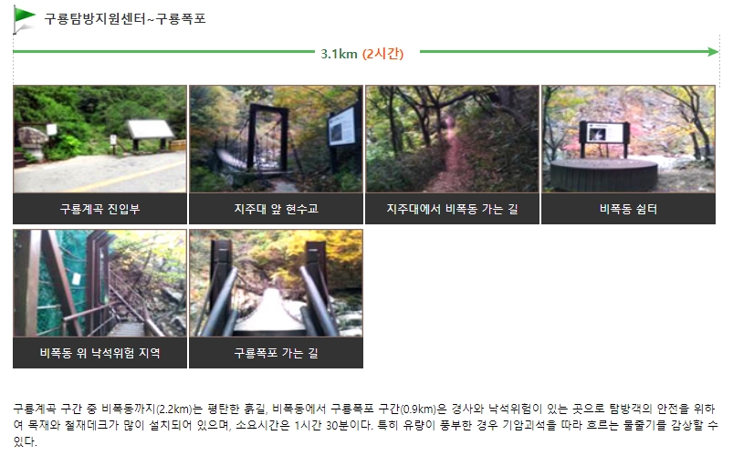 - 구룡계곡 코스: 시원한 물소리를 들으며 걷기 좋은 길